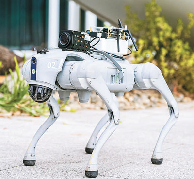 深圳大學(xué)人工智能學(xué)院展出的機(jī)器狗。