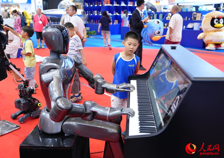 機器人彈奏鋼琴。人民網 王星攝