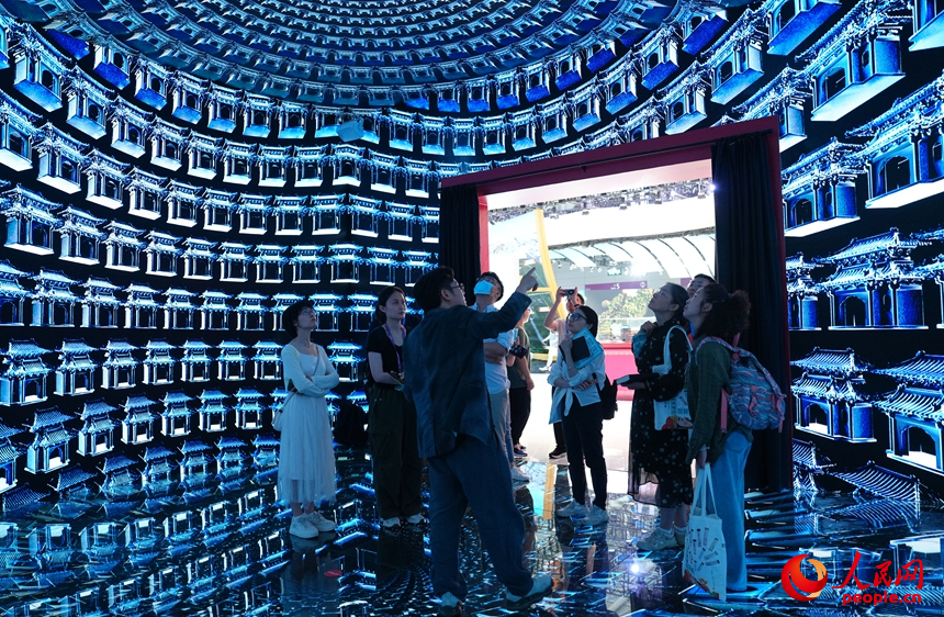 北京展區(qū)“穹天玉宇”沉浸式體驗空間吸引觀眾駐足欣賞。人民網 王星攝
