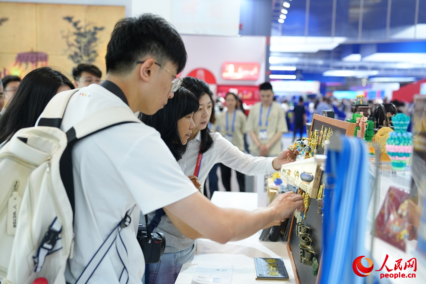 “這次我們帶了100多款產品參展,希望借助文博會平臺,用文創(chuàng)帶動更多人了解三星堆文化?!睆V漢市三星堆文旅發(fā)展有限公司相關負責人周仁雯惠表示。