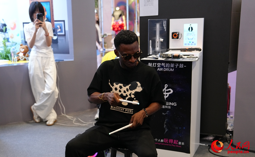 敲打空氣架子鼓。人民網 劉森君攝