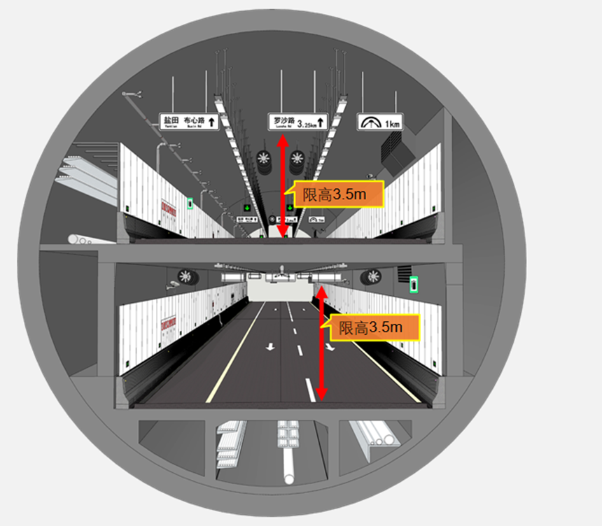 春風(fēng)隧道采用“單洞雙層”設(shè)計(jì),為小客車專用通道,限高3.5米。深圳市交通運(yùn)輸局供圖