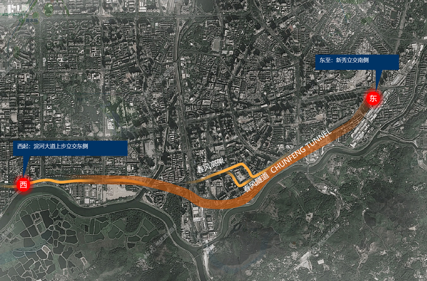 春風(fēng)隧道主線通車后,形成“春風(fēng)高架+春風(fēng)隧道”立體交通走廊,與現(xiàn)狀春風(fēng)高架共同構(gòu)成羅湖區(qū)南部東西向復(fù)合通道,將有效改善濱河大道沿線春風(fēng)高架段因車道數(shù)不匹配所造成通行能力折減嚴(yán)重問題。