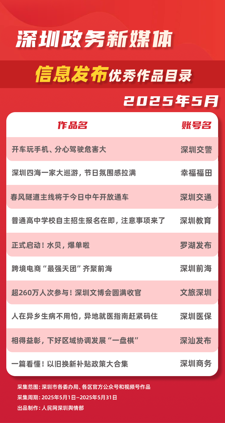 2025年5月深圳政務新媒體優(yōu)秀作品目錄發(fā)布