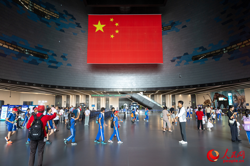 深圳科學(xué)技術(shù)館二層中庭,“科技藍(lán)”與“中國(guó)紅”交相輝映。人民網(wǎng) 王星攝