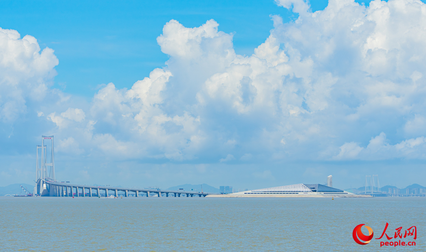 破浪而出的深中通道似一條鋼鐵巨龍。人民網(wǎng) 王星攝