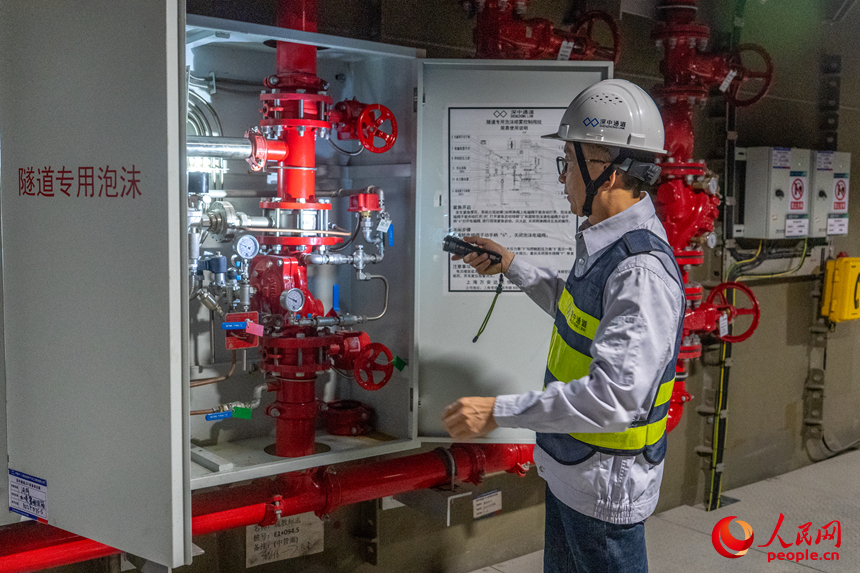 機電工程師王育忠檢查隧道安全設施。人民網(wǎng) 王星攝