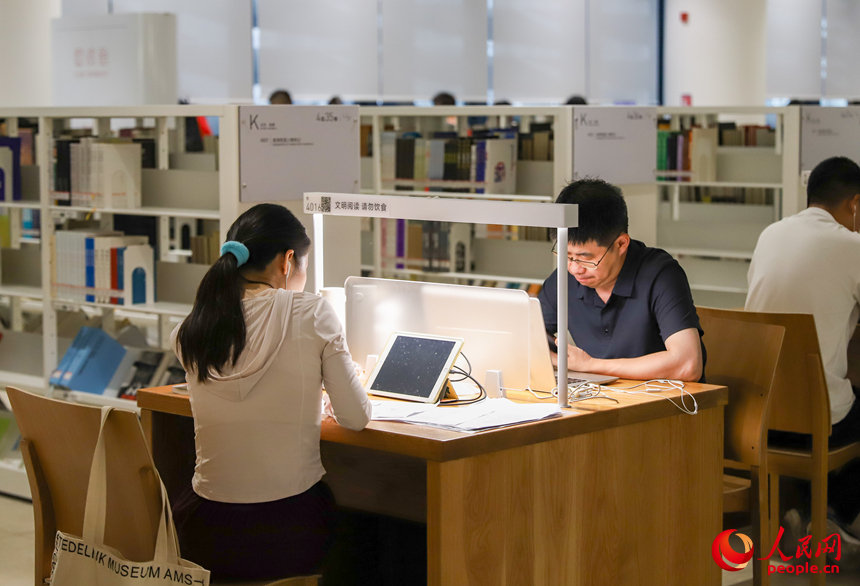 “為更好地服務(wù)讀者,北館一樓服務(wù)區(qū)從清晨7點(diǎn)開放到深夜11點(diǎn),以超長(zhǎng)開放時(shí)間助力全民閱讀走深走實(shí)?!眲⒄鼙硎?。(王星、夏曉倫、宋美琪)