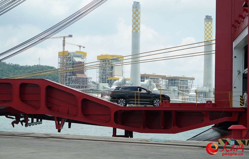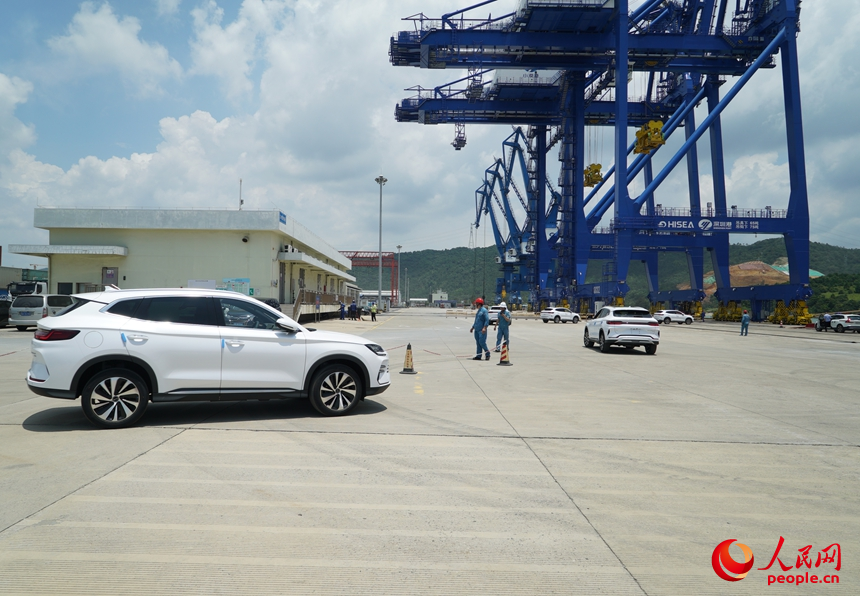 在小漠港登船的車輛由深汕基地生產(chǎn)。人民網(wǎng) 劉森君攝