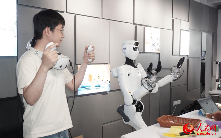 機(jī)器人演示抓取技能。人民網(wǎng) 李語(yǔ)攝