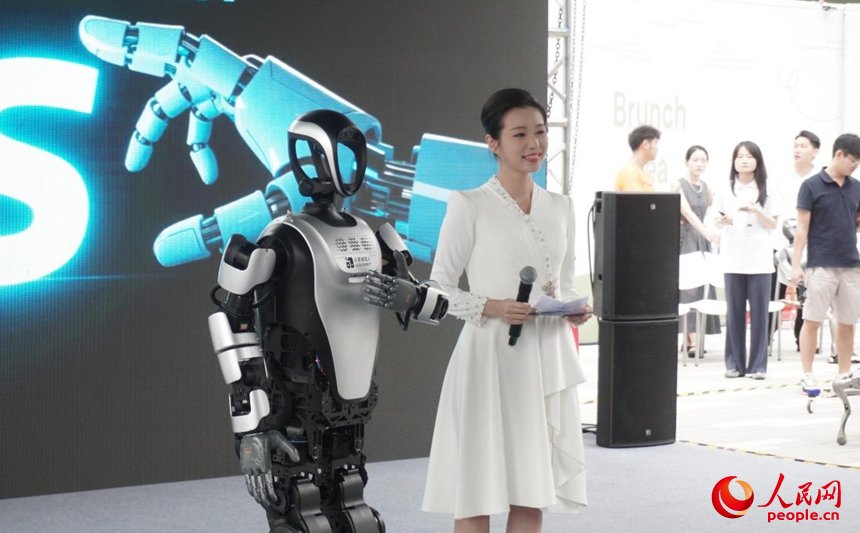 機(jī)器人參與活動(dòng)主持。人民網(wǎng) 李語(yǔ)攝