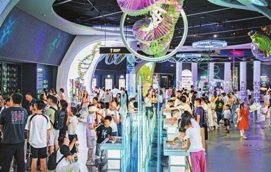 深圳科學技術館開館以來迅速成為流量IP。開館首日,上萬張門票10分鐘售罄,“五一”假期日均2.58萬人次,端午假期熱度持續(xù)攀升,“大飛船”正掀起全民探索的熱潮。