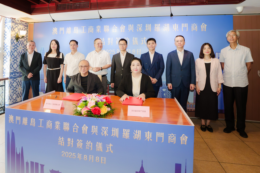 人民網(wǎng)深圳8月8日電 (李語)8月8日,深圳東門商會-澳門離島工商業(yè)聯(lián)合會結(jié)為友好商會暨簽署友好合作框架儀式在澳門舉行,雙方將構(gòu)建起常態(tài)化交流機制,在旅游推廣、文化創(chuàng)意、品牌打造、青年創(chuàng)業(yè)、智慧商業(yè)等領(lǐng)域展開深度協(xié)作。