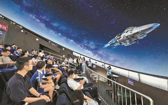 近日,深圳科學(xué)技術(shù)館天象廳(球幕影院)正式對(duì)外開放。香港中文大學(xué)(深圳)附屬學(xué)校的師生們成為這里的首批“星空探險(xiǎn)家”,共同解鎖“把宇宙搬進(jìn)室內(nèi)”的沉浸式探索之旅。深圳特區(qū)報(bào)記者 畢晗 通訊員 霍志欣 攝