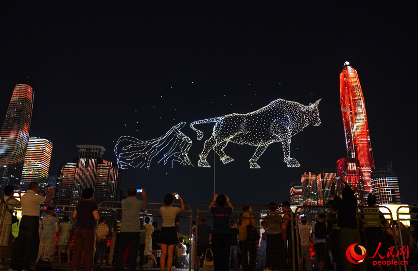 8月26日晚,深圳市民廣場,無人機組成“孺子?!眻D案。人民網(wǎng) 劉森君攝