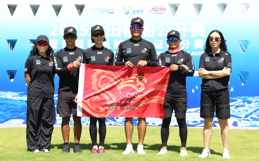 奧運(yùn)冠軍徐莉佳(左三)率中國(guó)寧波一號(hào)帆船隊(duì)參賽。主辦方供圖