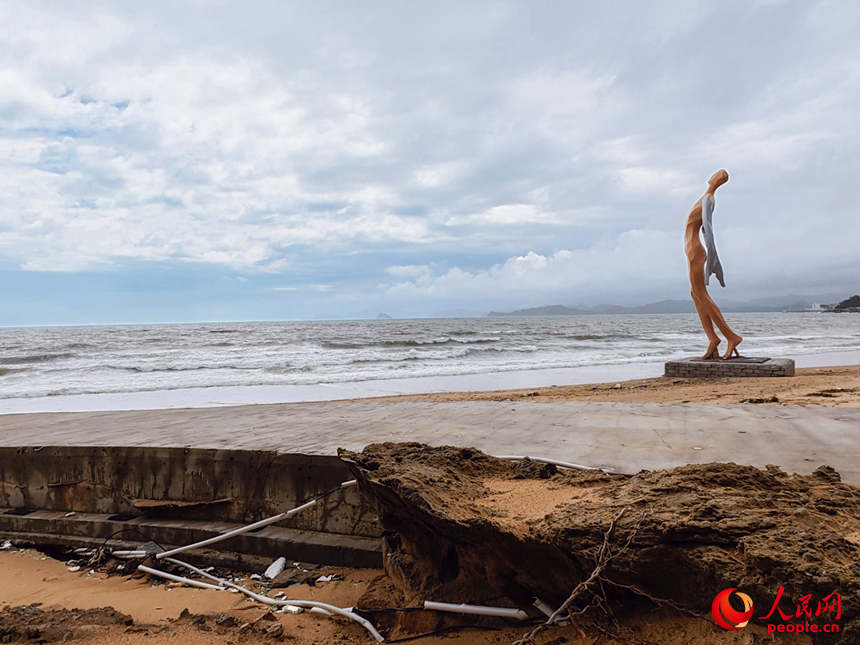 大梅沙海濱公園標(biāo)志性雕塑基座露出。人民網(wǎng) 王星攝