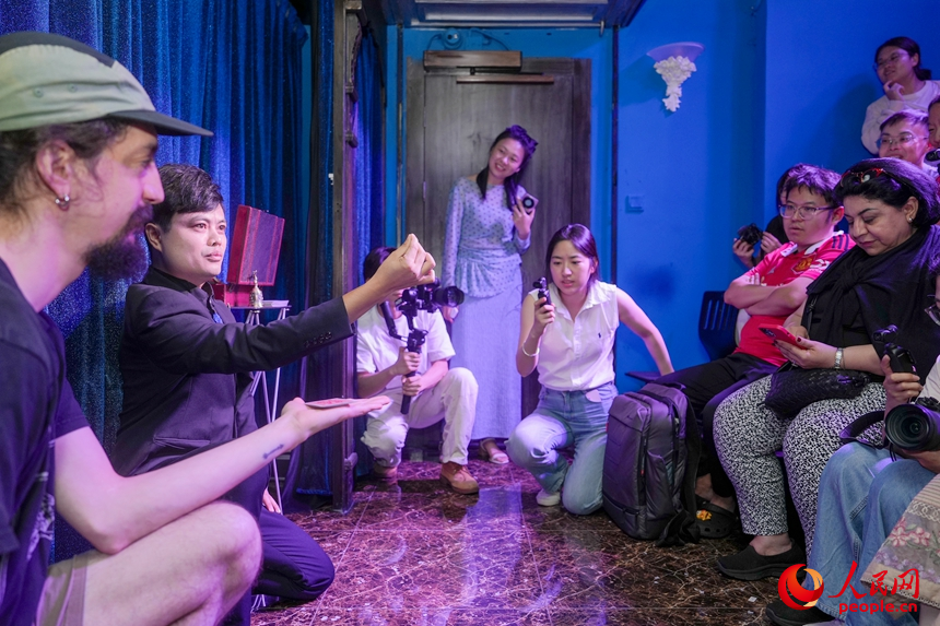 調(diào)研團(tuán)觀看魔術(shù)表演。人民網(wǎng) 王星攝