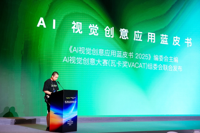 大賽現(xiàn)場(chǎng),《AI視覺(jué)創(chuàng)意應(yīng)用藍(lán)皮書(shū)》由AI視覺(jué)創(chuàng)意應(yīng)用白皮書(shū)項(xiàng)目組與瓦卡獎(jiǎng)組委會(huì)聯(lián)合發(fā)布,成為國(guó)內(nèi)首個(gè)系統(tǒng)聚焦AI視覺(jué)創(chuàng)意應(yīng)用領(lǐng)域的行業(yè)指南。