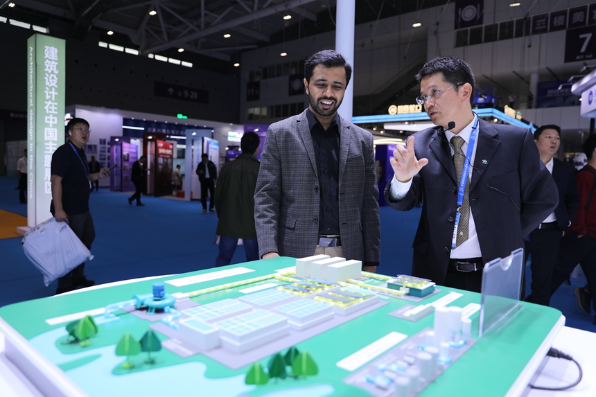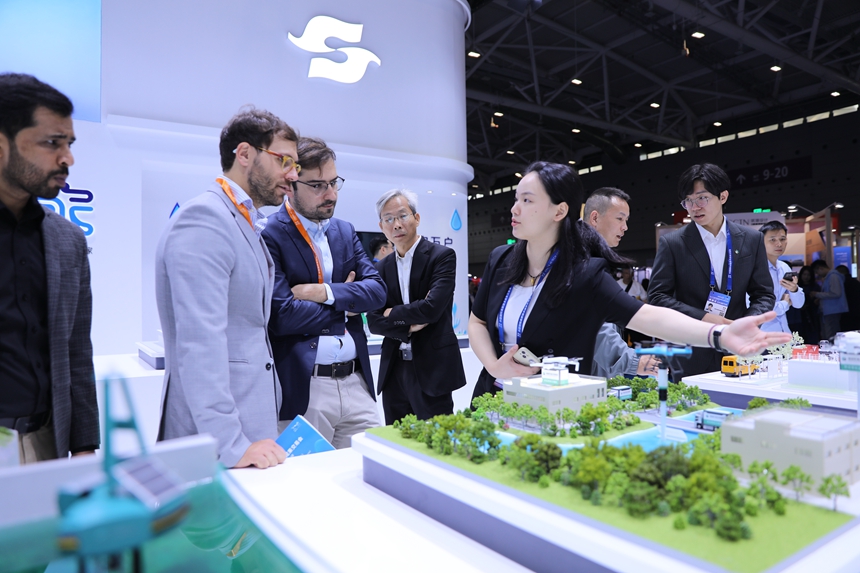 深圳環(huán)境水務(wù)集團工作人員向外國觀眾介紹創(chuàng)新成果。