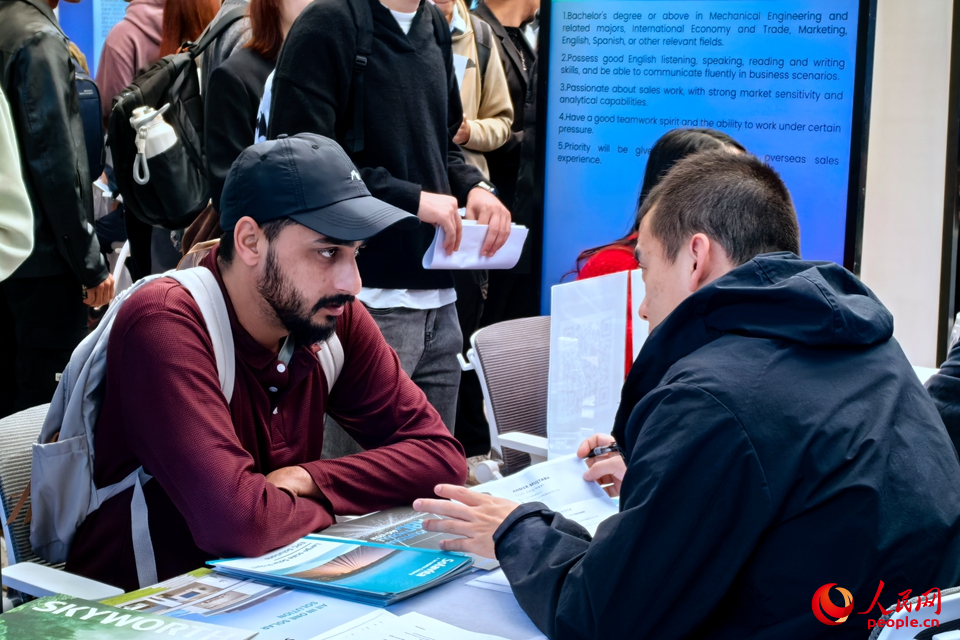 外籍人士和企業(yè)交談。人民網(wǎng) 劉森君攝